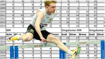 Sist, men absolut inte minst, är vår guldgosse Elias Kapell! Klubbrekord i M22-klassen i längd med sina fantastiska 7,99 i längdhopp. Av förståeliga själ är han inte etta på längshoppstronen i seniorklassen (ännu?) då en viss Michel Tornéus innehar den positionen med de starka noteringarna 8,30 och 8,44. Men om Elias fortsätter såsom han gjort tidigare kan han kanske t.o.m. utmana Michels längder på allvar så småningom!