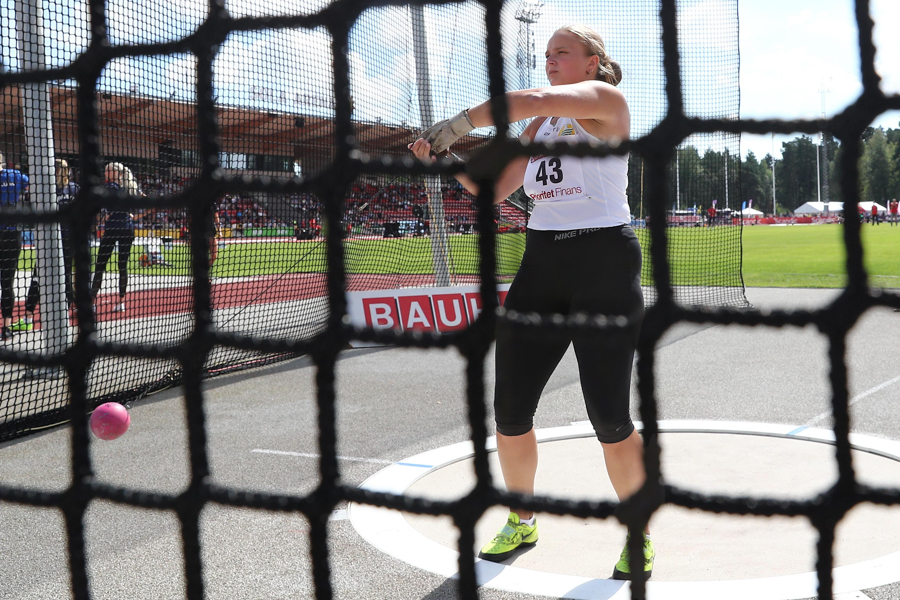 Helgens stora överraskning var utan tvekan Leia Finbom Höglund som knep guldet i F17-tjejernas viktkastning!