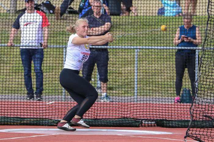 Grete Ahlberg visade att hon är stabil på 68 meter i släggan. Hon följde upp säsongsbästat i Europacupen med två stycken 68 meterskast som hamnade inom en centimeter. Slog tävlingsrekord med 68,27.