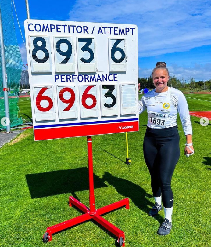 Grete Ahlberg slog till med ännu en supertävling när hon kastade hela 69,63 på en tävling på Island! Nytt personligt rekord, klubbrekord och distriktsrekord! Detta var andra raka tävlingen med personliga rekord och över 69 meter.