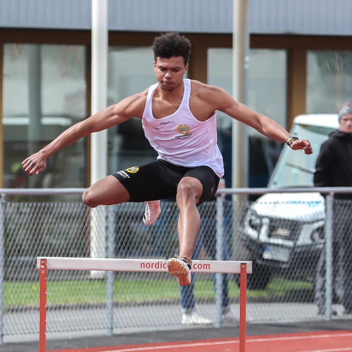 När Alex stod på startlinjen så trodde de flesta att han bara skulle jogga sig runt för att ta en poäng till klubben. Men där hade vi rejält fel! Alex satsade stenhårt och stod för en superprestation då han krigade till sig en otrolig tredjeplats! Alex starkaste del av loppet var efter sista häcken då det var en längre plan yta där han utan häckar kunde göra en fin avslutning där han med 6 hundadelar säkrade tredjeplatsen. 60,36 blev dessutom tiden vilket är ett mycket skapligt resultat för ett förstagångslopp i grenen.
