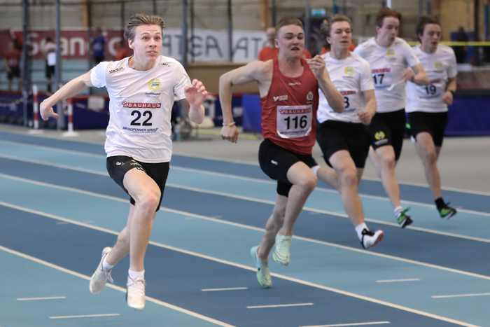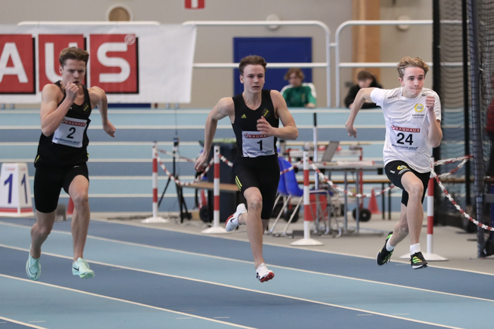 Så lyckades man igen med bedriften att få samtliga våra fyra killar i samma lopp! Elias formligen flög fram som han gjort senaste veckan och slaktade ännu en gång sitt sprintpers ned till 7,06! Även Aron perssade med hundradelen och Alfred och Carl en hundradel under.