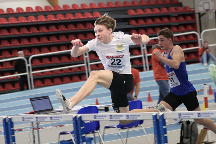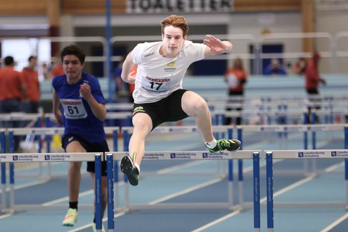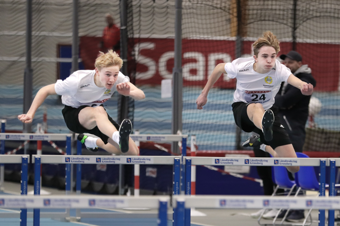 Fotografens mardröm när våra två killar lottades i sama heat och dessutom på varsin ytterbana... Anton kapade sitt pers med 6/100 till 7,54 och Hannes tangerade sitt på 7,71.