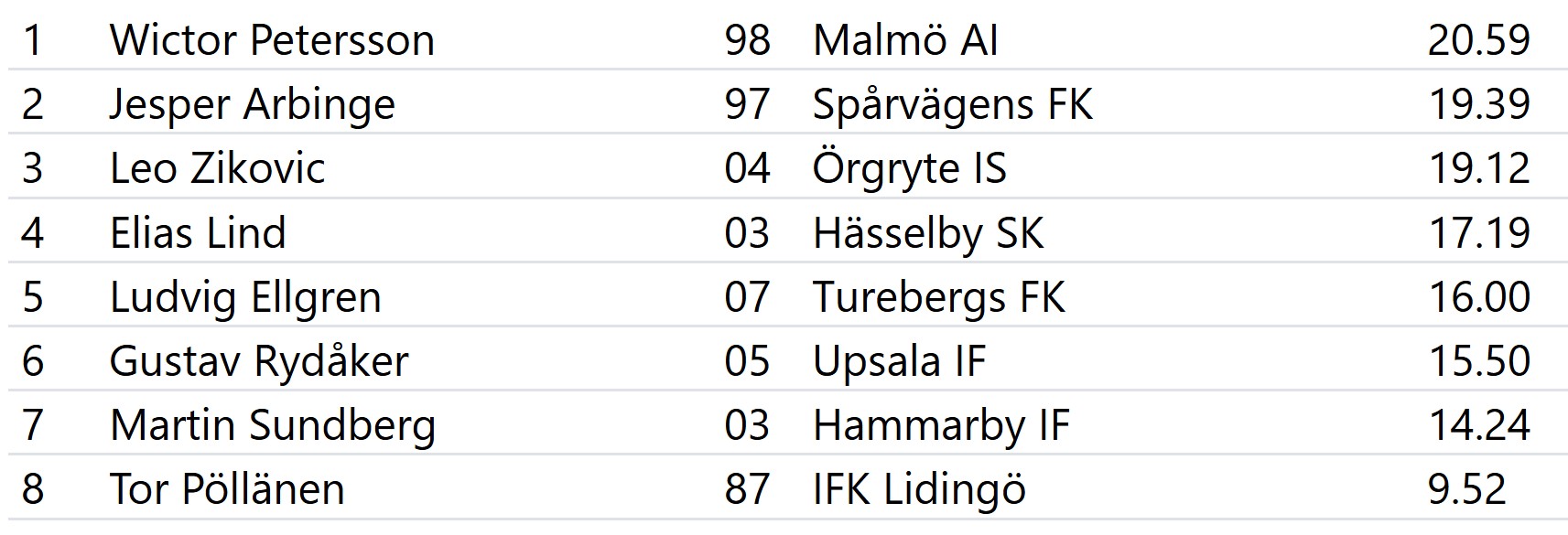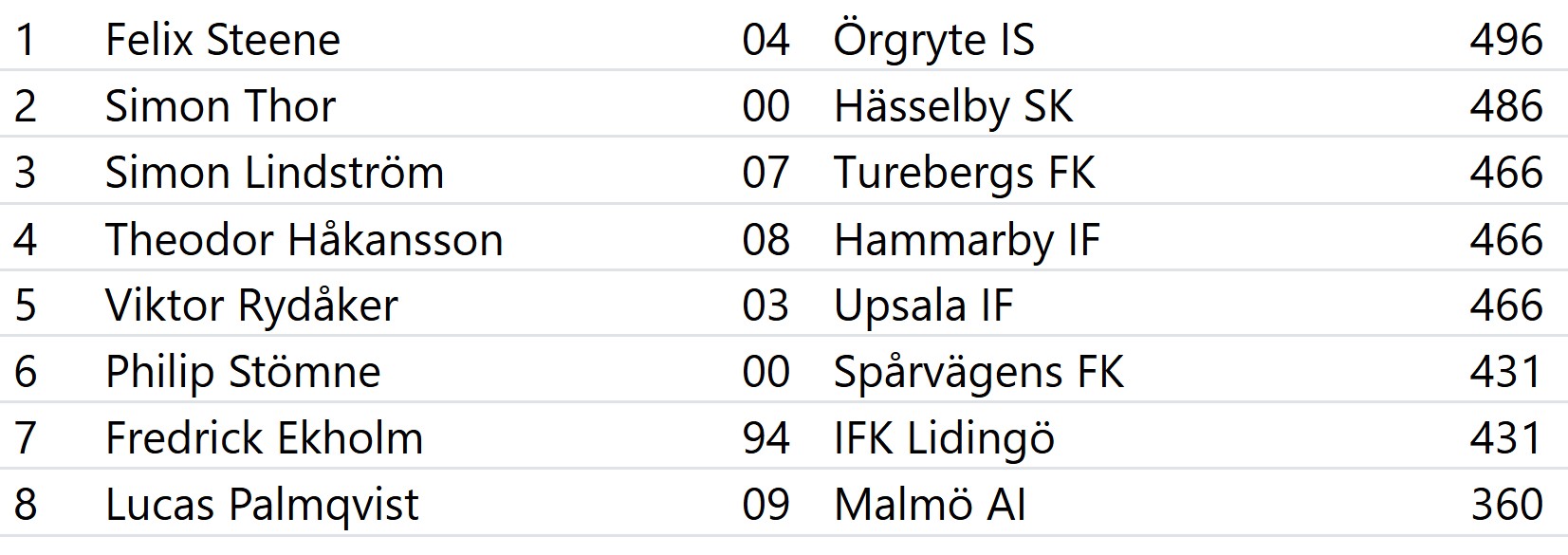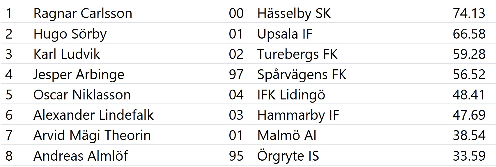 Casper Gustafsson -04 Eliah Andersson -09